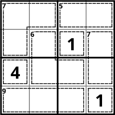 Líon isteach na huimhreacha 1-4 , 1-5 nó 1-9 gan dúbailt in aon líne, colún, ná bosca.