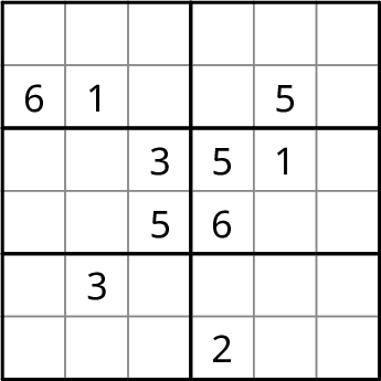 Líon isteach na huimhreacha 1-5, 1-6 nó 1-9 gan dúbailt in aon líne, colún, ná bosca.