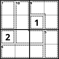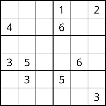 Líon isteach na huimhreacha 1-4, 1-5, 1-6 nó 1-9 gan dúbailt in aon líne, colún, ná bosca. Leideanna ar fáil anseo.