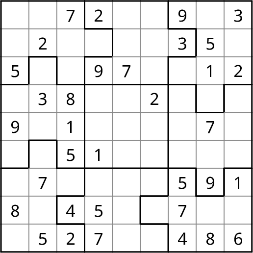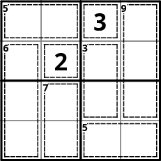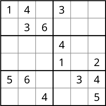 Líon isteach na huimhreacha 1-4, 1-5, 1-6 nó 1-9 gan dúbailt in aon líne, colún, ná bosca. Leideanna ar fáil anseo.