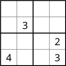Líon isteach na huimhreacha 1-4, 1-5, 1-6 nó 1-9 gan dúbailt in aon líne, colún, ná bosca. Leideanna ar fáil anseo.